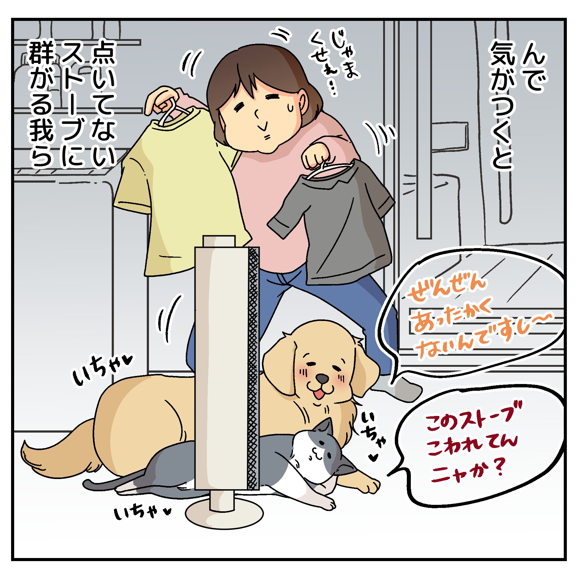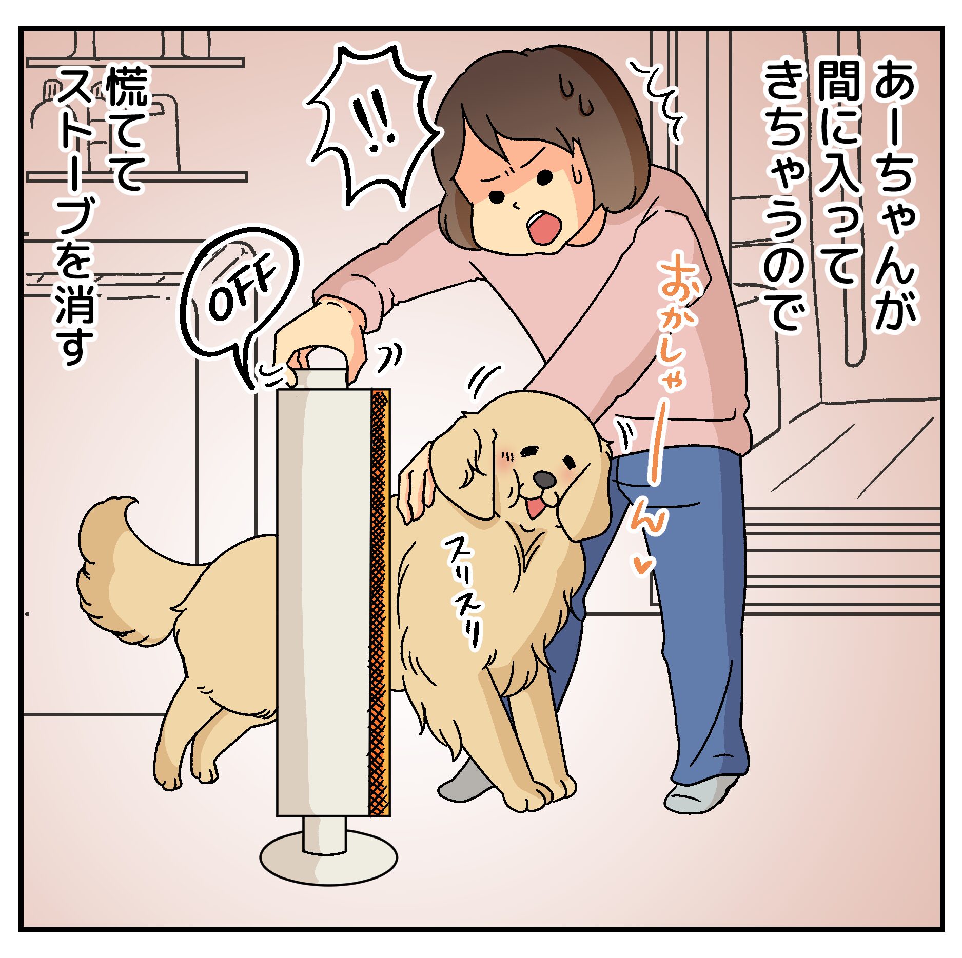 あーちゃんの毛がチリチリに焼けてしまう!と、慌ててストーブを消さなければならないのですが、
